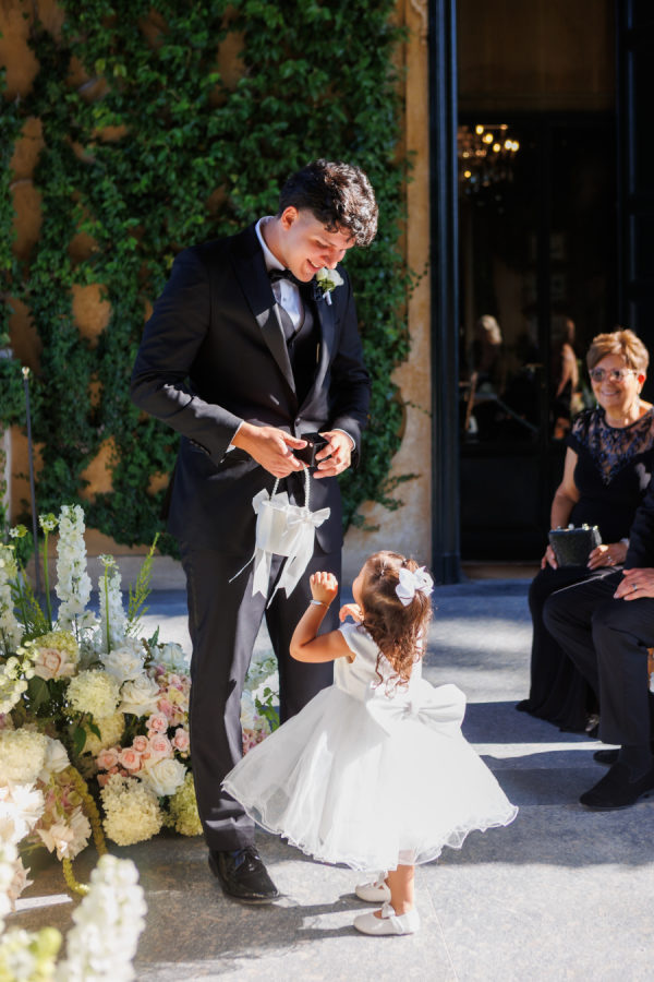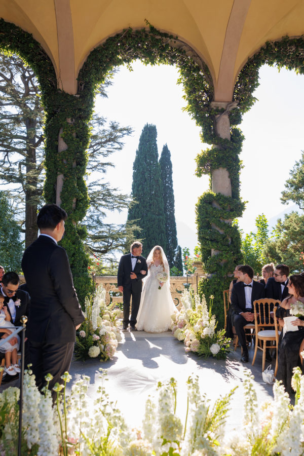 A special detail was the entrance to our ceremony. To access Villa del Balbianello, guests had to take a scenic boat ride. The bride arrived via a separate boat with the father of the bride and made a grand entrance up to where the ceremony took place. Our wonderful photographer, Carolina Serafini, was able to capture all our special moments and details.
