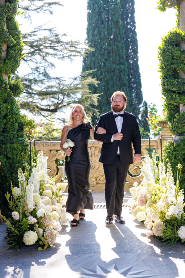 A Classic Lake Como Wedding with All-Black Attire and Candlelit Garden Romance