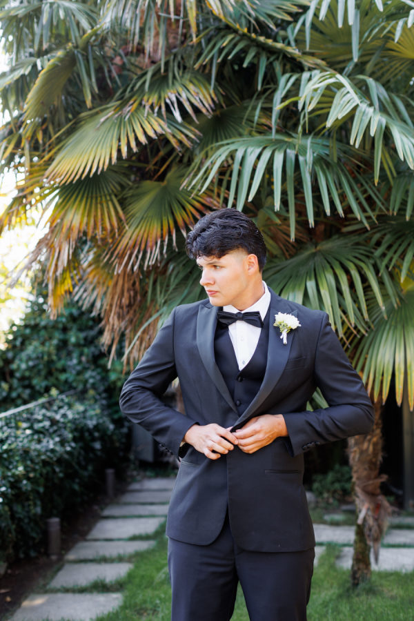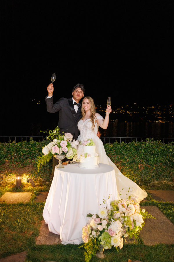 Wedding colors: light pink, green, and white. The vision for the wedding was to be classic and timeless. We focused on colors and design that would be elegant and formal. We wanted the beautiful scenery of Lake Como to be the main design focus. We had an all-black attire for guests and the wedding party to achieve a classic wedding feel. With the help of Parade Wedding planning, my vision and design for the wedding came to life.