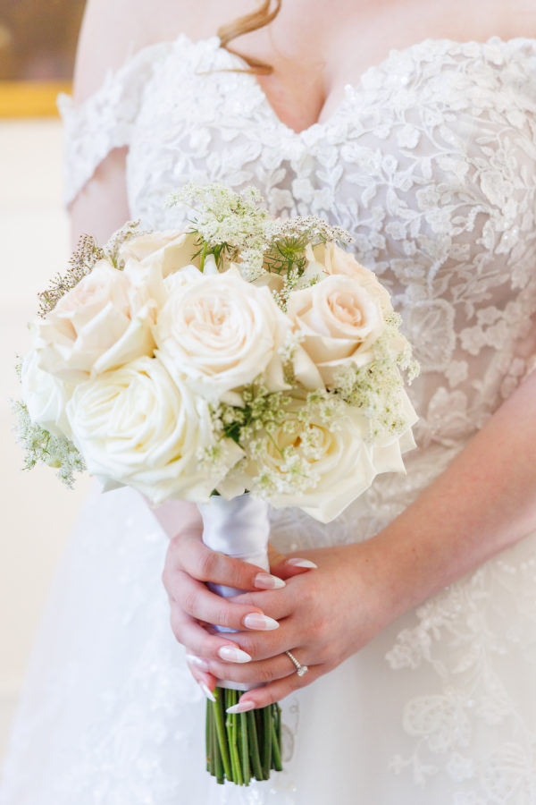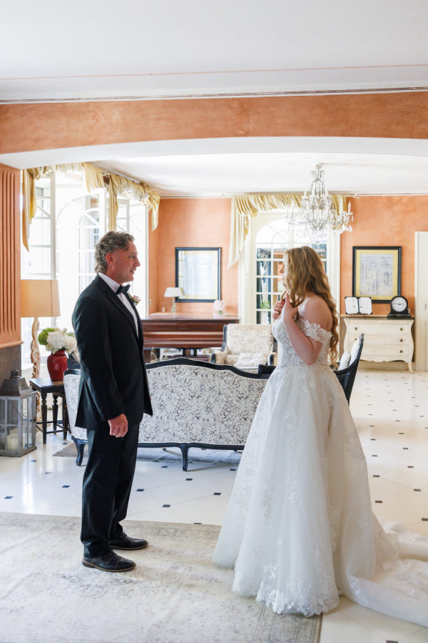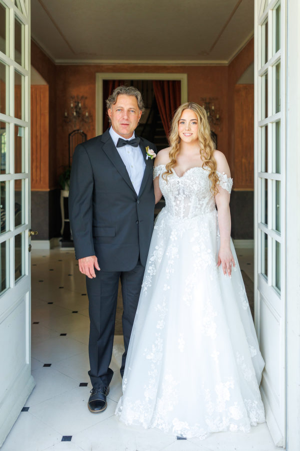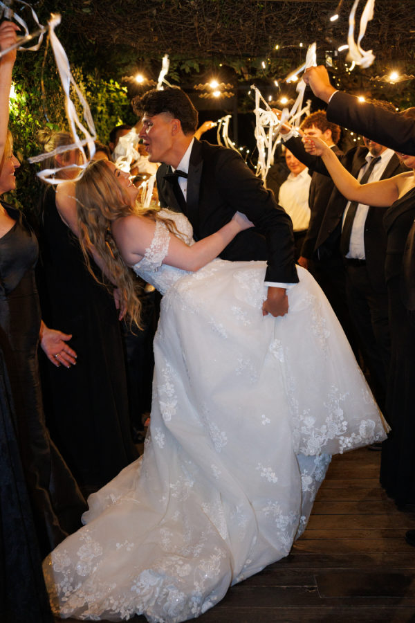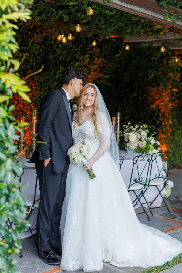 For the music, we had a string quartet play an instrumental version of our chosen songs. The groom and wedding party walked down the aisle to I Can’t Help Falling in Love by Elvis Presley. The bride walked down the aisle to Oceans by Hillsong United. During the vows, Flightless Bird by American Mouth. For the first kiss and aisle exit, Accidentally in Love by Counting Crows played. The reception entrance was to Adore You by Harry Styles. The first dance was to When I Look at You by Miley Cyrus.