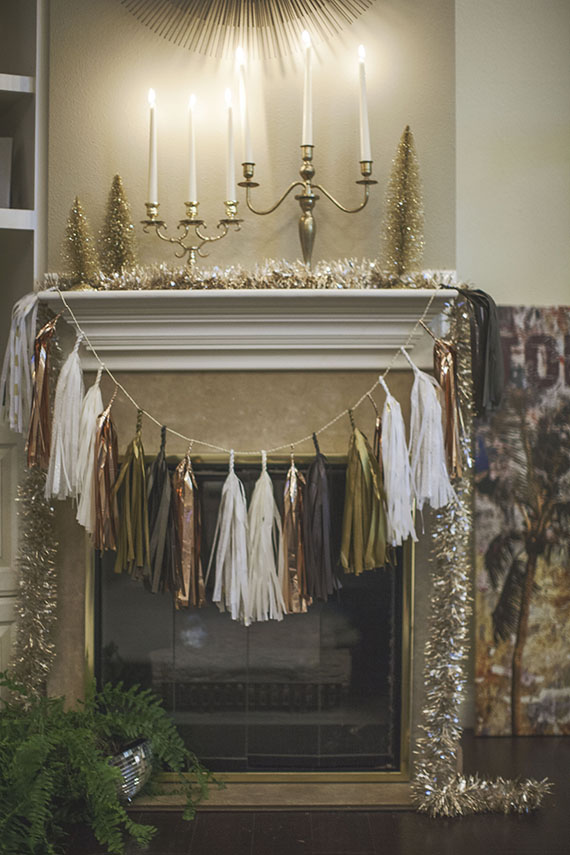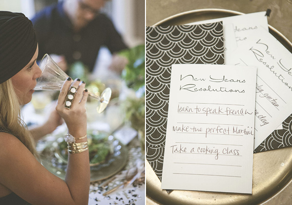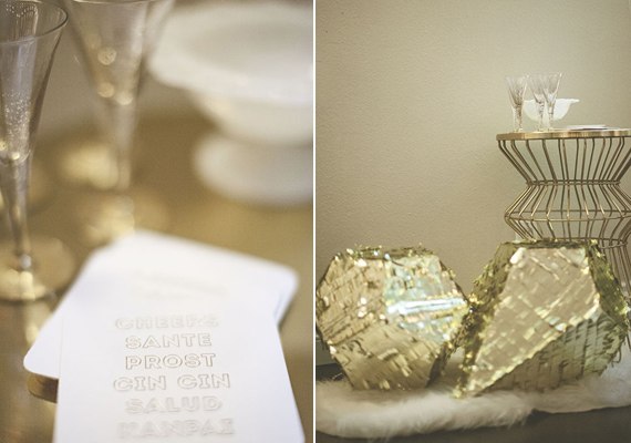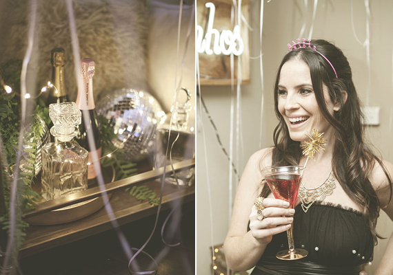 Placemats, syrups, cocktails books, and starburst: Shop Pigment / Cocktail mixers: Jack Rudy Cocktail Co. Syrups, Bourbon Barrel Maple syrup, The Filthy Liar Gin Mixer / Wall decor: Mid Century Wall Starbursts / Placemats: Gold Chilewich Dahlia Placemats / Coasters: Sugar Paper LA and Flair Designery / Gold Tinsel Drink Stirrers: Peach & Pearl / Custom NYE Beijos Confetti: The Confetti Bar / Custom blow horns: Stephanie Shives Stuido / Hot Pink Headbands: Ban.do / Tissue garlands: Studio Mucci / Piñatas: Katie Franklin / Invites, Menus, and Resolution Cards: Orange Paper Shoppe