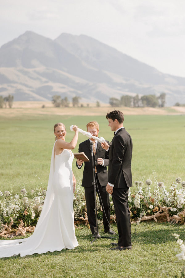 Photography: Jeremiah and Rachel Photography | Event Design: Bijou Weddings by Design | Event Planning: Bijou Weddings by Design | Floral Design: Florence Floral Design | Wedding Dress: Made With Love Bridal | Cake: Bowl and Arrow | Invitations: Basic Invite | Ceremony Venue: Sage Lodge | Reception Venue: Sage Lodge | Bridesmaids’ Dresses: Revelry | Catering: Sage Lodge | DJ: Joes Dj Service | Groom’s Attire: Brackish Bowties | Men’s Attire: Ike Behar | Beauty: Ethereal Hair & Makeup Artistry | Bridal Shoes: Kate Spade | Linens: BBJ La Tavola | Photobooth: Venture Photo Co. | Rentals: Montana Party Rentals