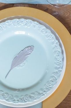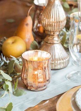 I love this tablescape, you guys! It’s just all so gorgeous, and this color palette is amazing, and have I mentioned my love for these mercury glass accents?