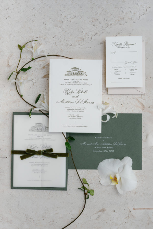 Bride Kylia of Babes on Trend chose a modern and romantic palette of ivory, light blush, and sage.