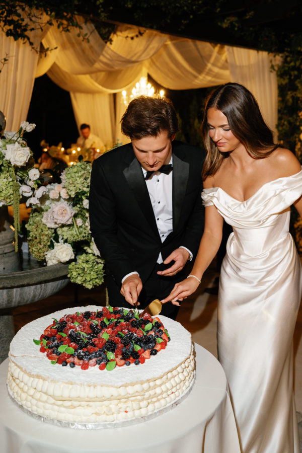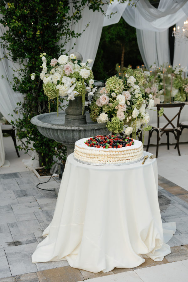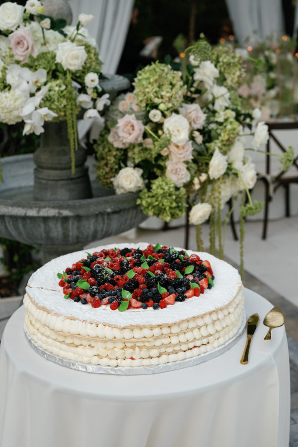 Mikkelsen’s Pastry Shop made an Italian style millefoglie filled with layers of puff pastry and cream with fresh berries. It was the perfect choice for a wedding set in an Italian Style Villa.