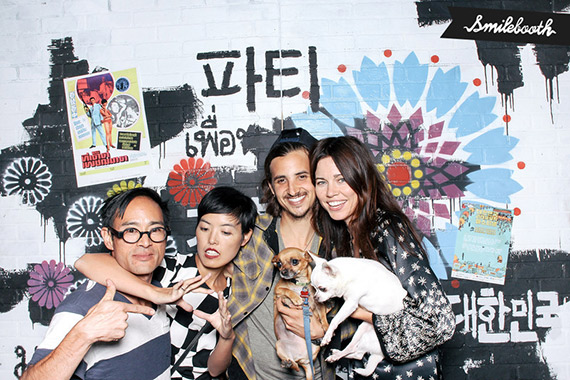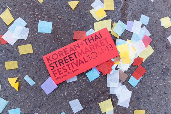 This event was open to the public for a pre-purchase ticket as all of our collaborations are, see invite here. We used their logo’s color palette to inform our design and picked Thai and Korean as themes because Angie is Korean and Ted is Thai (Angie and Ted own Poketo). Of course we had a Smilebooth (with an ah-mazing backdrop designed by Smog Design, they also designed our menus) but also we hosted the debut feature of a company here called Flip Book! It was a huge hit, check it out under the hash tag #poketointhesalon on Instagram. Guests played ping pong, watched the Thai movie Citizen Dog on bleachers and danced the night away! Many wrote us the next day saying it was “the party of the year”. We all had such a blast. Naturally this party was very food intensive. There were four action stations of our take on traditional Thai and Korean Street Fare and we also served two different delicious Soju cocktails that were served in plastic bags (this is common in Thailand). Guests played ping pong, watched the Thai movie Citizen Dog on bleachers and danced the night away!
