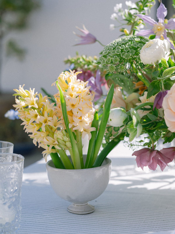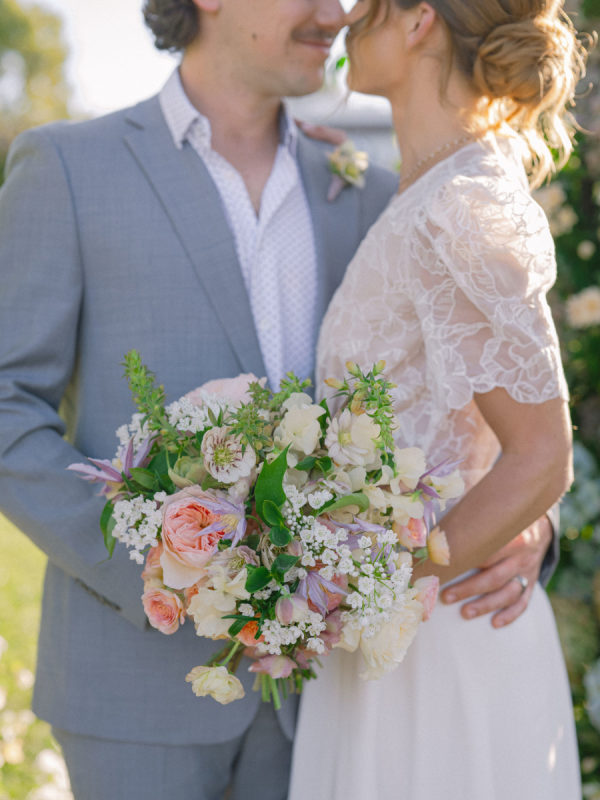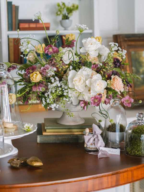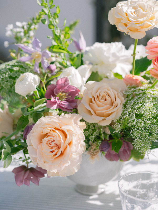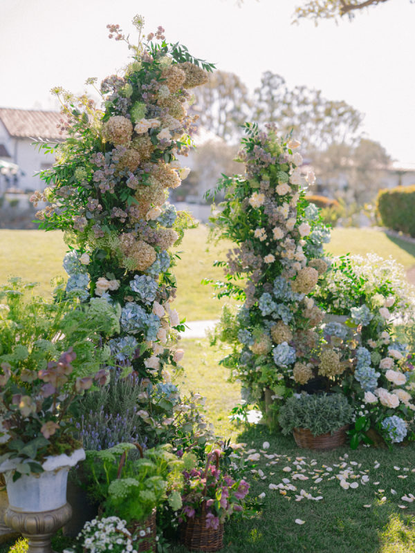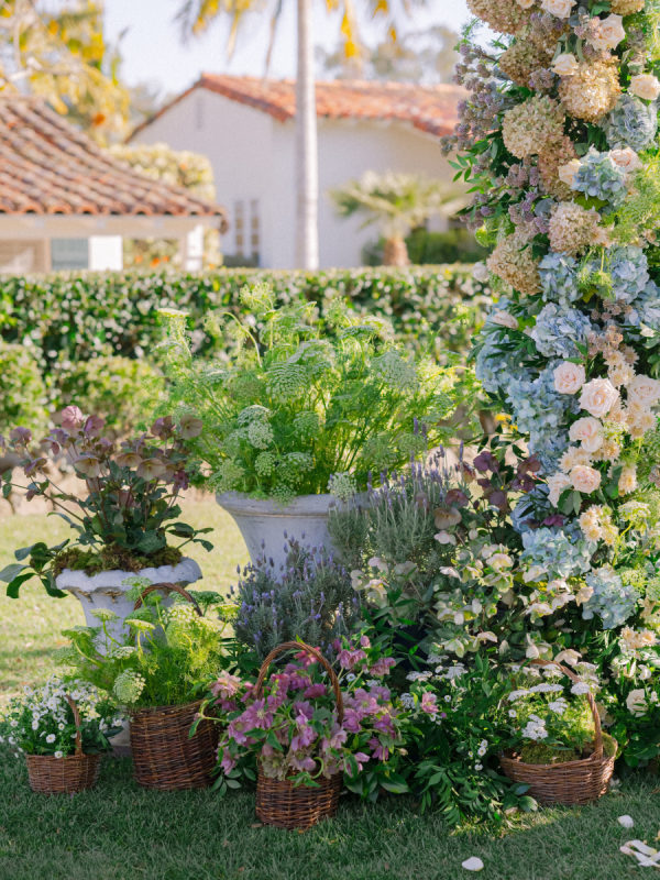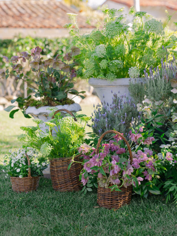 Florist, Flowers Annette Gomez, loves the pacific north west, especially this time of year. The clematis, hellebore, tulips, allium, hyacinth and all sorts of spring bulb goodness that bloom this time of the year inspired her design. From Annette: “I also love European gardens! I have been following a bunch of gardeners in the UK and I am completely intrigued by waddle fences and anything woven. Hence the addition of the baskets and just a hint of old world urns… a nod to my love of anything European garden inspired. “